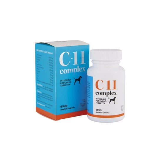 Alkalmazás módja: 1 ízesített tabletta 20 testtömeg kilogrammra naponta egyszer. Az alkalmazás első 5 hetében (ún. feltöltési időszak)dupla dózis, azaz 2 tabletta/20 ttkg adása javasolt. A tünetek a C-11 Complex porcvédő első beadásától számított két héten belül enyhülnek, de a kívánt hatás elérése érdekében célszerű a tablettát kúraszerűen,3 hónapon át folyamatosan alkalmazni. Súlyos ízületkárosodás esetén a tabletta folyamatos adagolása javasolt. A tabletta különlegessége a kétrétegű ízesítés. A külső réteg sonka ízű, kellemes illatú, ezért az állatok a legtöbb esetben szívesen elfogyasztják. Beadható kis falatban vagy a táphoz keverve is, ekkor a tabletta belsejéből felszabaduló máj íz válik dominánssá.