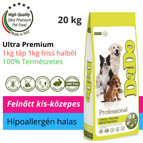 A DaDo hipoallergén halas felnőtt közepes és kistestű kutyatáp összetevői: