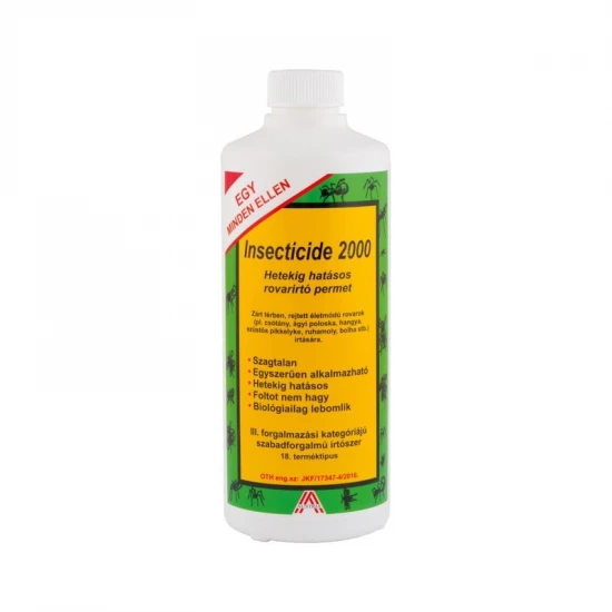 Hatóanyaga: 0,05% Chrysanthemum cinerariaefolium kivonat (szénhidrogén oldószerekkel kivonva) + 0,05% piperonil-butoxid + 0,15% permetrin