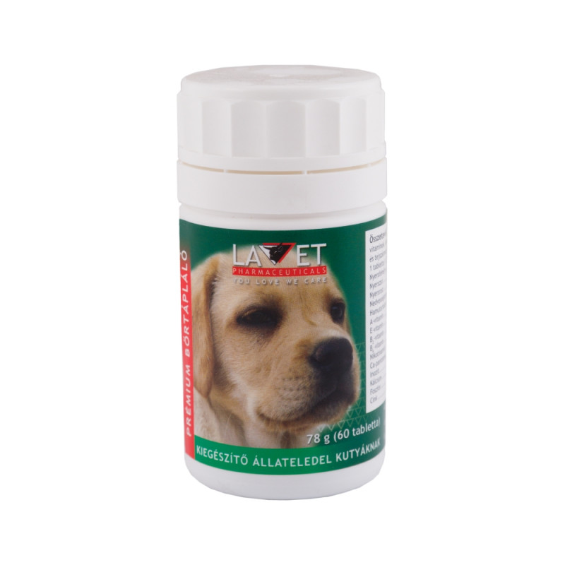 Beltartalom tablettánként:Nyersfehérje: 10,9 %, kalcium: 2,7 %, foszfor: 2,2 %, A-vitamin: 1.000,0 NE, E-vitamin: 1 0,0 NE, B2-vitamin: 1,0 mg, pantoténsav: 6,0 mg, B6-vitamin: 0,5 mg, Niacin: 2,5 mg, biotin: 2,1 mg, folsav: 0,05 mg, esszenciális zsírsav: 60,0 mg, metionin: 10,0 mg, kolin-klorid: 5,0 mg, cink: 1,2 mg