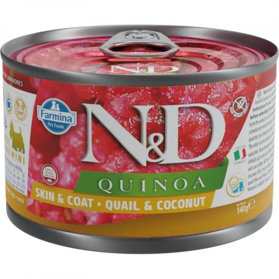 N D Quinoa Dog konzerv Skin coat fürj kókusz adult mini