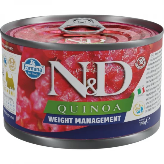 N D Quinoa Súlykontroll teljes értékű diétás eledel felnőtt kutyák számára, a túlzott testtömeg csökkentésére.