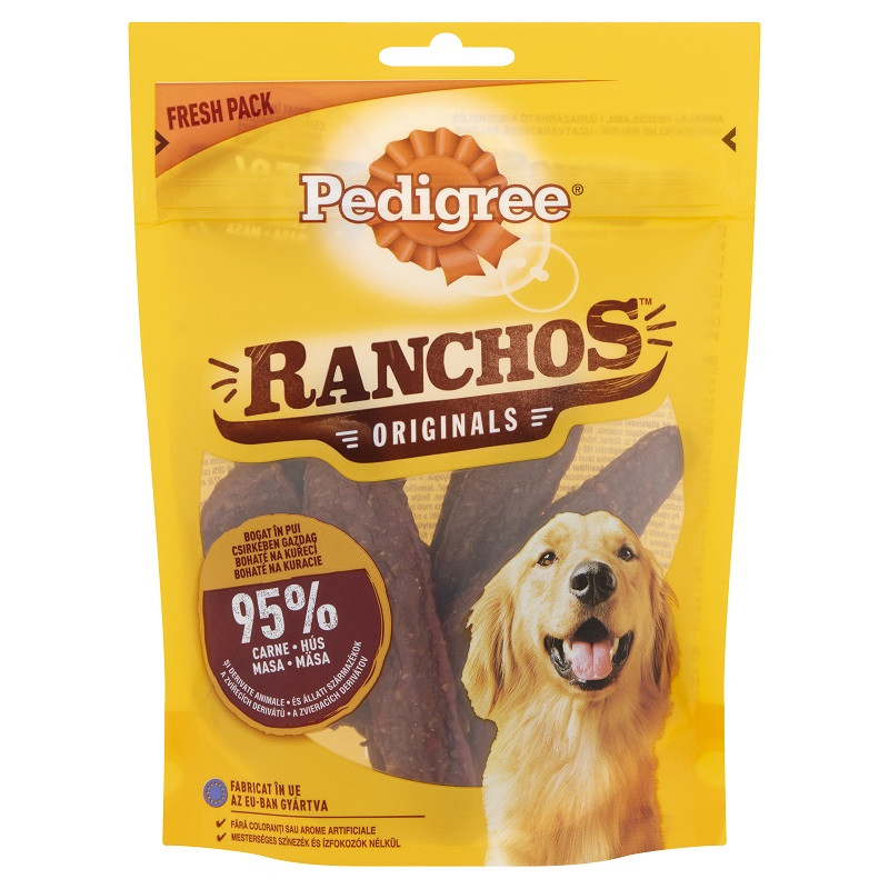 A Pedigree Ranchos Csirkével snack 95% hússal és állati melléktermékkel készült puha jutalomfalat. Gondosan szárított, igazán ízletes és finom illatú.