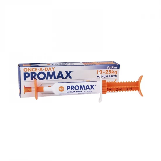 Javallat: A Promax paszta olyan kombinált, immunstimuláns bélflóra regeneráló táplálékkiegészítő kutyáknak, amely jótékony mikroorganizmusok mellett tartalmaz speciális szuper abszorbens alkotó elemet is, amely alkalmas az egészséges bélflóra megőrzésére és helyreállítására. Megakadályozza a patogén törzsek elszaporodását Adagolás: naponta egyszer, három napon át, szájon keresztül (vagy az állatorvos utasítása szerint) 10 kg testsúly alatt 3ml/nap egyszer