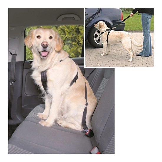 A hámra csatlakoztatható biztonsági öv megakadályozza kedvence járműben való mozgását. A hám és a biztonsági öv hossza szabályozható. Nem minden autótípushoz alkalmas, alternatív változatok külön elérhetőek. A hám melkassal érintkező részénél puha párna védi kedvencét és szolgálja a biztonságát. A mindennapi sétához is alkalmazható. Anyaga: nylon és fém. Színe: fekete.