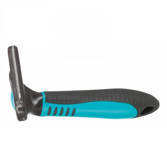 Cserélhető fejű fésű. Méret: 7x15cm. Használatával könnyedén eltávolítható az elhalt szőrzet. A kefe rozsdamentes acél pengéje egyszerűen cserélhető. A fogantyú műanyag, csúszásmentes gumi markolattal. Lovak szőrén is használható.