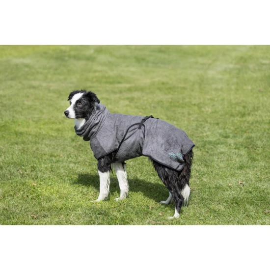 – Praktikus kialakítás: A köpeny magas gallérral rendelkezik, ami segít megszárítani a kutya fejét is.